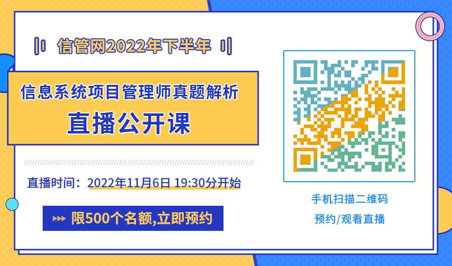 最后想說的肯定是希望各位同學(xué)養(yǎng)好精神,預(yù)祝大家順利通過考試,拿到軟考證書!同時(shí)信管網(wǎng)也會(huì)在考試結(jié)束之后更新2022下半年軟考考試真題答案及解析,歡迎大家考后來對(duì)答案估分,還有真題解析公開課等著大家,敬請(qǐng)關(guān)注。