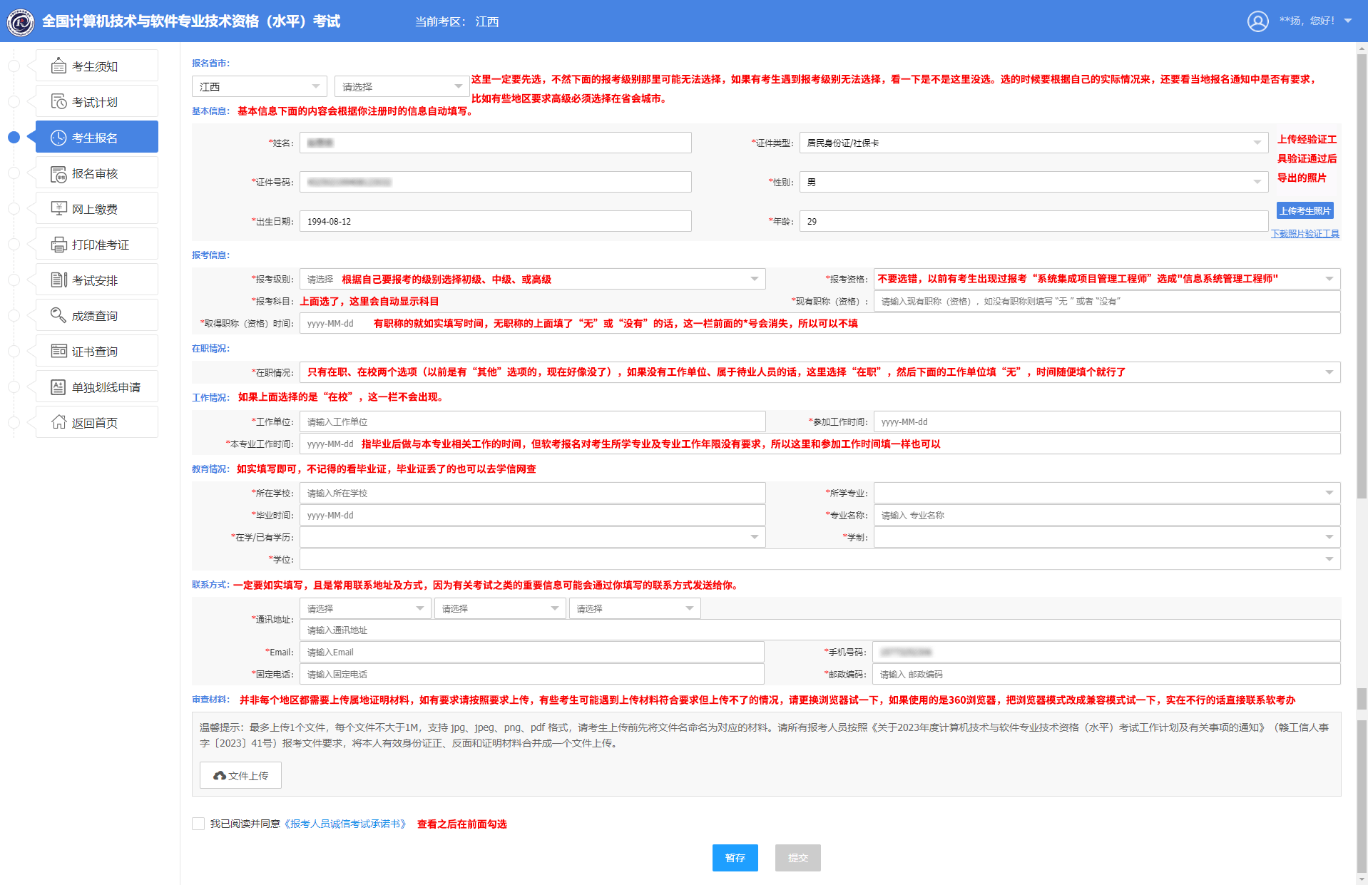 ⑧填寫報(bào)名信息、上傳報(bào)名照片、上傳證明材料(并非所有地區(qū)都需要上傳證明材料)【點(diǎn)擊查看報(bào)名信息填寫圖文說(shuō)明】