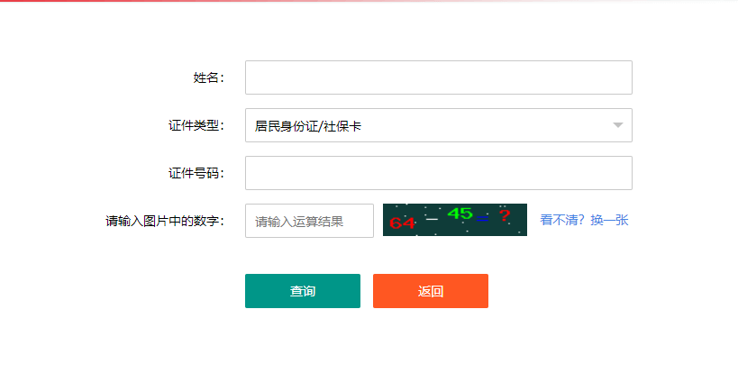 第四步:進(jìn)入準(zhǔn)考證打印頁面后,填寫個人信息,輸入姓名,選擇證件類型,輸入證件號碼,輸入圖片中的運(yùn)算結(jié)果,最后點(diǎn)擊查詢即可。